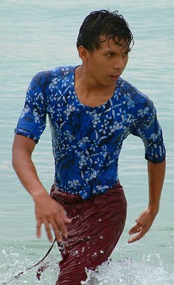 Actually, in the hot climate bathing in clothes makes sense: it is not necessary to spend time changing of clothes, or worry about the clothing left on the shore. Wet clothing protects from the heat.